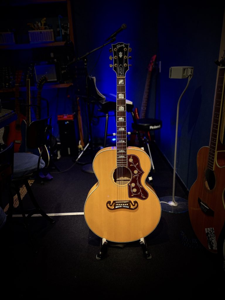 多くのアーティストが使っているJ45は万能選手。でもこのギターは好みが分かれます。大きなボディから出される音は普通のギターより低音成分が多く、その伸びとツヤはギターを知らない人でも感じる事ができます。短所として低音が鳴り過ぎる事。また、弦のテンションが高いのでハイコードが若干弾きづらい事。気持ちよく鳴らすためには曲調やコードが限定されるところがあります。お客様の中にはこのギターよりYAMAHAの方がしっくりくるという方もいらっしゃいます。