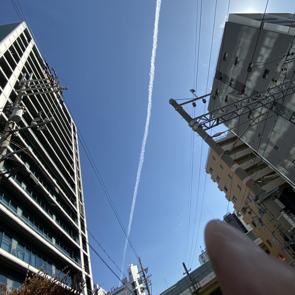 昨日の空を見上げたら長い飛行機雲が。飛行機雲は飛行機の排気ガスが急激に冷やされガスに含まれている水分が水滴となって雲として出現したもの。行動1万メートルとかだったらマイナス30度とかにはなるが、低空ならそこまではいかないのです。昨日見た飛行機雲は低空にできてました。よっぽど寒いところを飛んでいたようです。季節はひとつひとつ秋へ。そして冬へと移り変わっていきます。