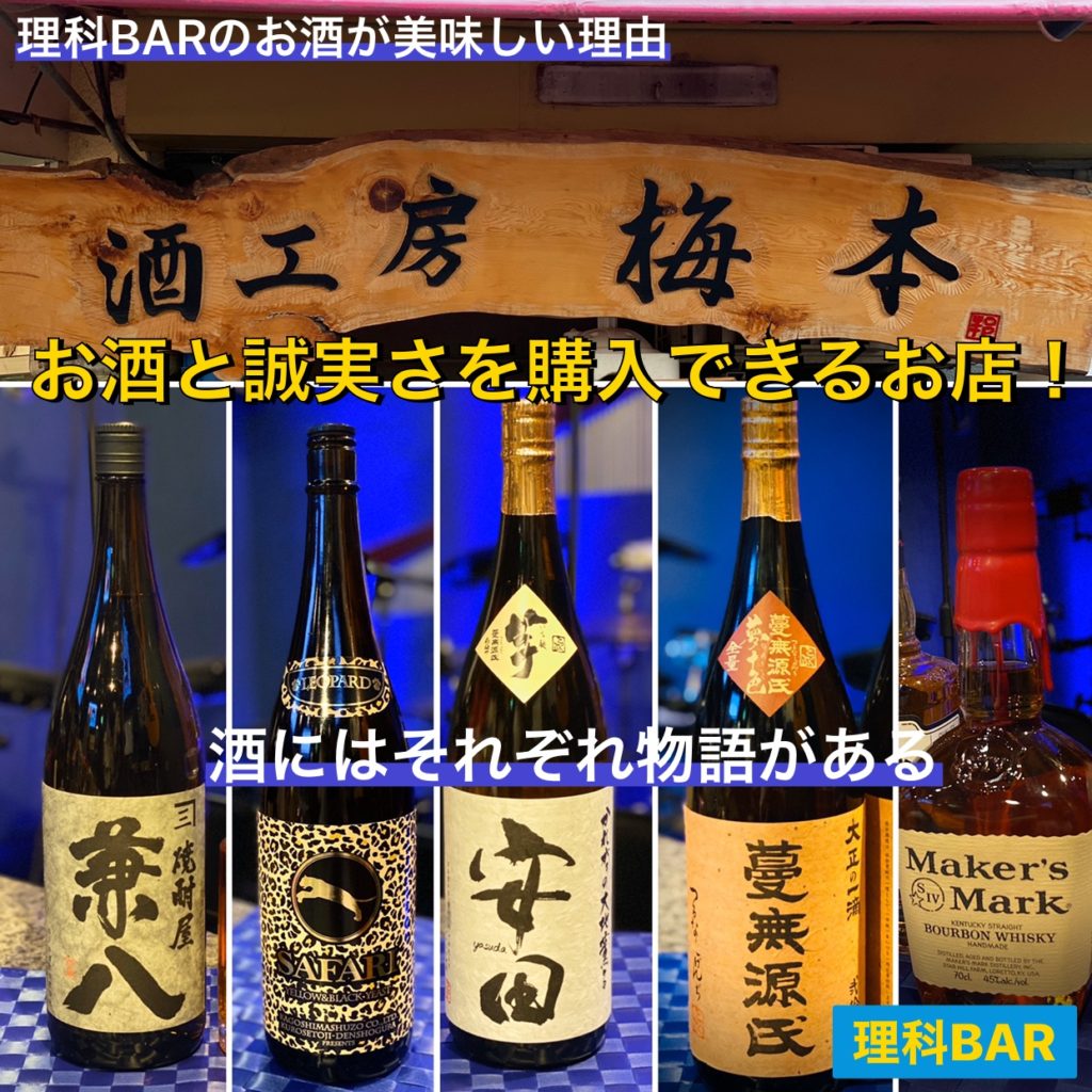 それはメインの仕入れ先が梅本酒工房さんだから。適正価格で販売して下さるのが一番。それぞれのお酒に対して何かしらのストーリーを教えてくださいます。自分は色んなお客様に対して好みのお酒を試していただく事もあるのですが、それの元になっているのが梅本さんのアドバイス。華やかとか芋らしいとかの特性もそれぞれの蔵元の販売姿勢や歴史なんかも。お話が面白いのでついつい買ってしまう事もよくあるのです。お酒が美味しいのはお客様とうまくマッチング出来るから。その為の情報を誠実に伝えてくださるお店がこちらなのです。そんな姿勢を理科BARとしてもこれからも学んでいきたいと思ってます。ただひたすらに感謝です。
