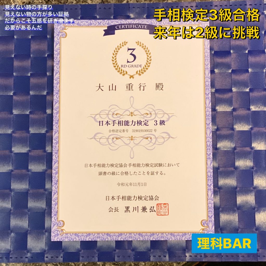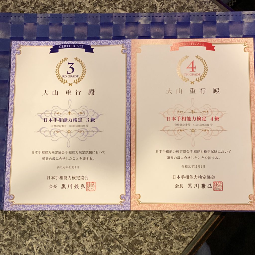 手相検定3級合格しました…