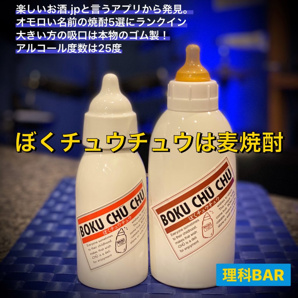 その中で「楽しいお酒.jp」というアプリを発見!早速インストールしたら「面白い名前の焼酎」の特集がありました。写真の哺乳瓶焼酎はその中に出ていたものです。いつもの取引させてもらっている酒屋さんに問い合わせしましたが、当然変わり種過ぎて在庫はありません。ネットで買って現物が届いて大笑い。インパクト強!中身は普通の麦焼酎です。