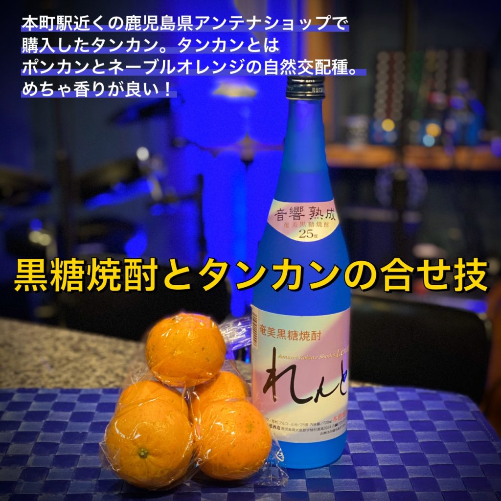 この写真の左手のミカンみたいな果物がタンカンです。みかんと同じくらいの大きさですが、みかんほど柔らかくありません。ポンカンなどと同じくらいのかたさです。タンカンとはポンカンとネーブルオレンジの自然交配種だそうです。タンカンを持っただけで手にタンカンの良い香りが移ります。切ったらなおさらです。身も甘くて美味しいです。これを輪切りにして黒糖焼酎に絞り入れて飲んでもらいました。うーん、贅沢ですな。甘くて香りの良い飲み物の完成です。