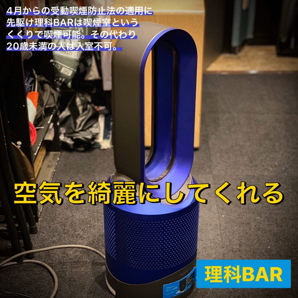 開店当初、安いBARではありたいものの安っぽいBARにはしたくないという事で購入したのがダイソン製品でした。ご自分のお家にあるという方もいますが、自分も含めてそうで無い方もいますよね。少しは贅沢気分を味わえるといいなと思ったのですが、そこまではいきませんね。送風と暖房の機能がある空気清浄機です。やはりダイソンはモーターが強力ですね。コンパクトでウチのような広くない店にはピッタリ。今日も元気に動いてくれてます。感謝。
