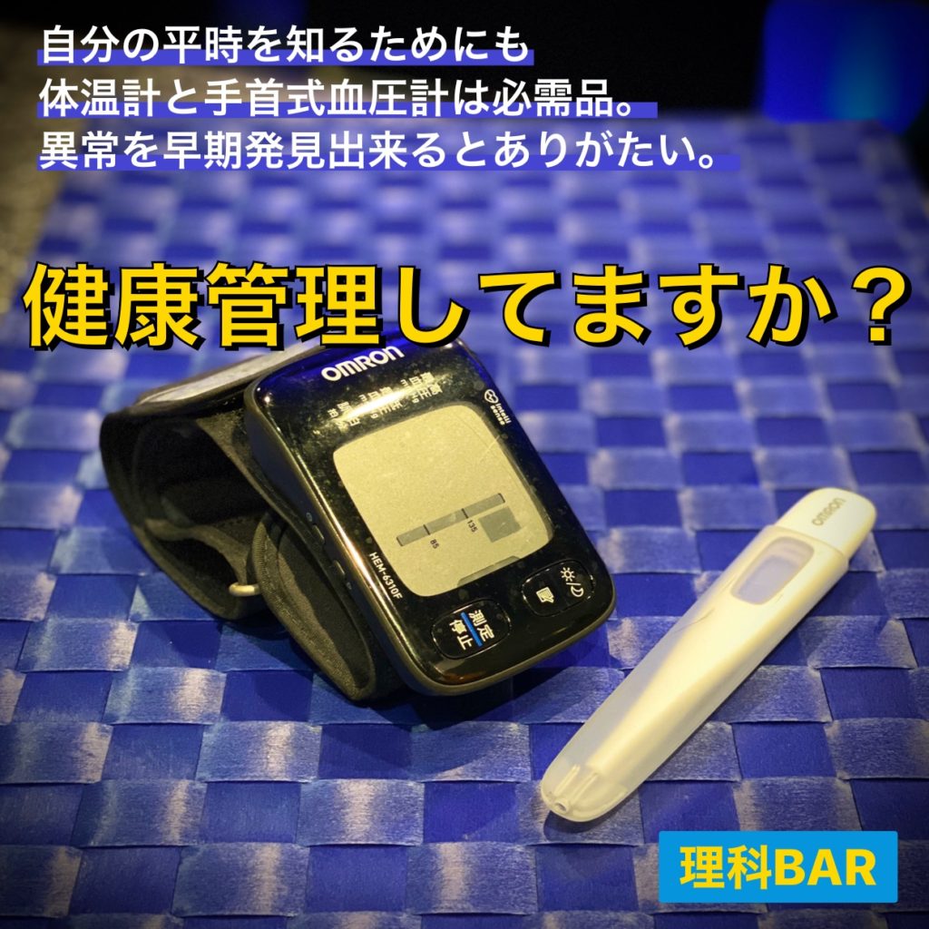 写真は30秒で測れる体温計と手首式の血圧計です。時節柄自分が風邪ひいてたり体調優れない時こそ、すぐに知りたいのが体温と血圧です。理科BARに来れば常備していますのですぐに測れます。他にも自分を知るとか確認したいけどあまり測ったことのない項目を測定する機械や器具があるのです。発見も確認も楽しいですよね。仲間とも共有していきましょう。