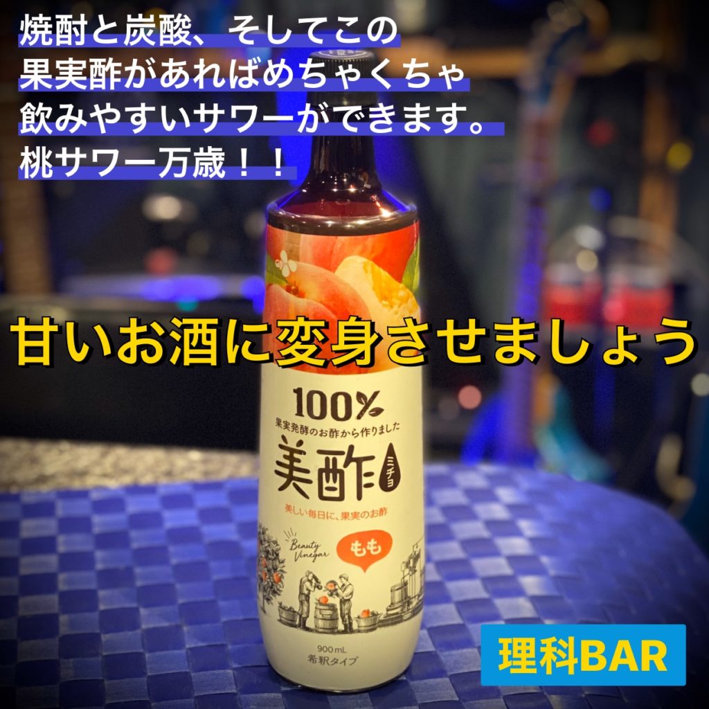 アルコールが酸化すると酢になります。エタノールの場合は体に入って酸化され、まずはアセトアルデヒドという物質になります。これは酢酸になる前の中間物質ですが、いわゆる悪酔の原因物質です。エキス分や糖分の多いお酒の場合、体の中で酸化が進みにくくなるのでアセトアルデヒドで存在している時間が長くなります。日本酒やワイン、カクテルなどが当てはまりますよね。自分はワインで財布を二回無くしました。その話は置いときまして、今回は果実酒をさらに発酵させて酢にした飲み物です。とにかくそのままだと濃いのでお酒や炭酸を加えます。甘くて美味しいと好評頂いてます。どうぞお試し下さい。