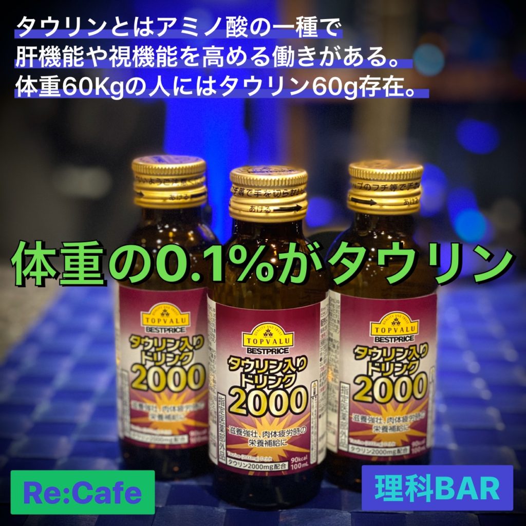 このドリンクはそのタウリンを2g含んでいます。タンパク質を取るのと同じようなイメージですね。タウリンは肝機能や視機能を改善してくれる働きがあるようです。他にもタウリンが多く含まれている食べ物を探してみようと思います。