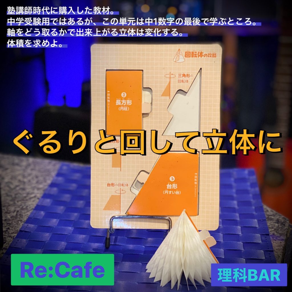 1枚の平面図形をある軸に沿って回転させるとその軌跡は立体になります。中1数学の最後の方で学びます。大概は出来た立体の体積と表面積を求める問題がくっついてきます。体積は感覚的にわかるのですが、表面積は出来た立体の展開図を書き出さないとなかなか求めるのに困難を極めます。ここで焦らず丁寧に区分けしながら考えるクセをつけられたらその後の数学て生活習慣でも変わっていく気がします。