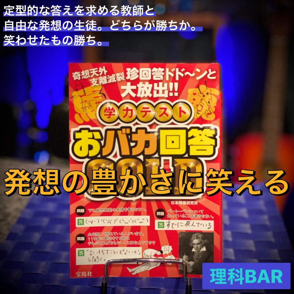 誰でもテストの点数を上げたくて勉強しますよね。でもその努力があと一歩で報われてないと感じると間違い方に共感を感じます。どう考えてもウケ狙いだろうと思っても白紙よりマシだろうと解答欄を埋める健気さに心惹かれてしまいます。定型的な答えを求める教師よりも自由な発想で応える生徒の方が楽しいです。でも定型的な答えをないがしろにしても能力と人間性が疑われてしまうのでご注意ください。
