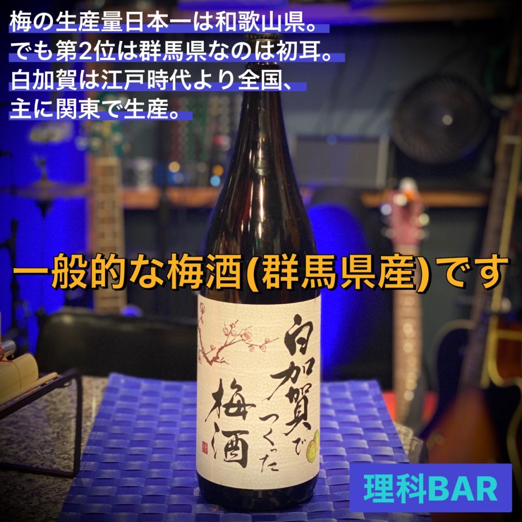 使用されているのは群馬県産の白加賀という梅です。お酒は醸造用アルコールで一般的にはホワイトリカーと同義と思われます。カラメルで色付けがなされています。透明よりも琥珀色していた方が美味しそうに見えるからなんでしょうね。フランス産のプラム酒にも色付けがなされているモノがありますよ。クセが少なくて1番飲みやすい梅酒です。一部を木のボトルに入れてスモーキーな香りを付けてみようかと思います。