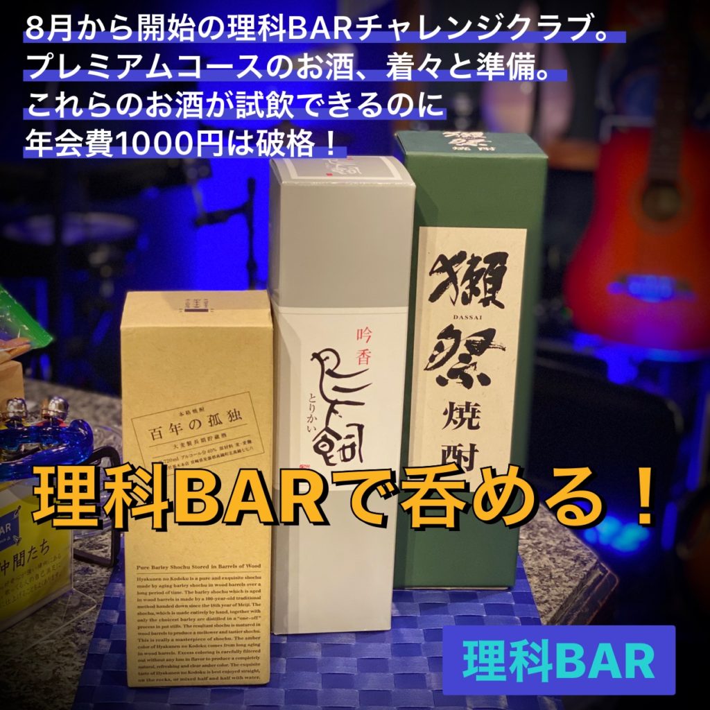 2020.07.24 ブログ 準備進行中〜理科BARチャレンジクラブ 昨日はお酒を買いに行ってました。獺祭焼酎、百年の孤独、鳥飼が購入出来ました。ウイスキー系は梅本酒店さんに頼んでありますので安心。改めてこんな銘柄を呑める店ってあまりないので我ながらビックリです。GOTO理科BARですな。 ブログ一覧