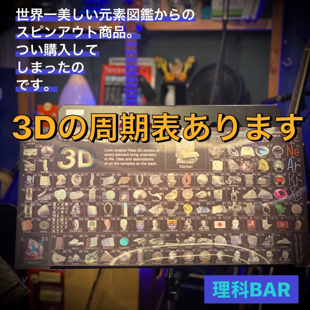 3Dの周期表です。結構綺麗です。すぐに分かるところに置いてます。