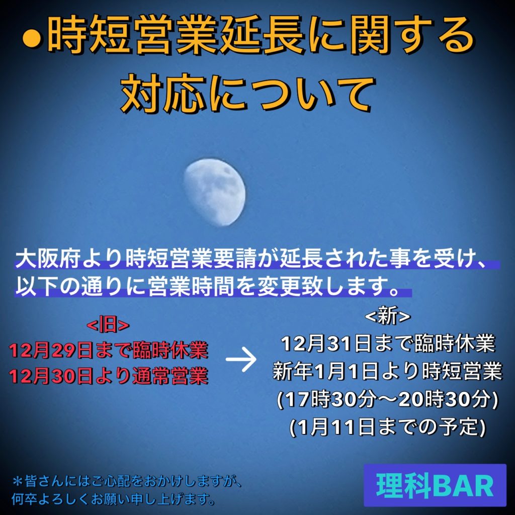 時短要請を受けまして以下の通りに営業する事に致しました。